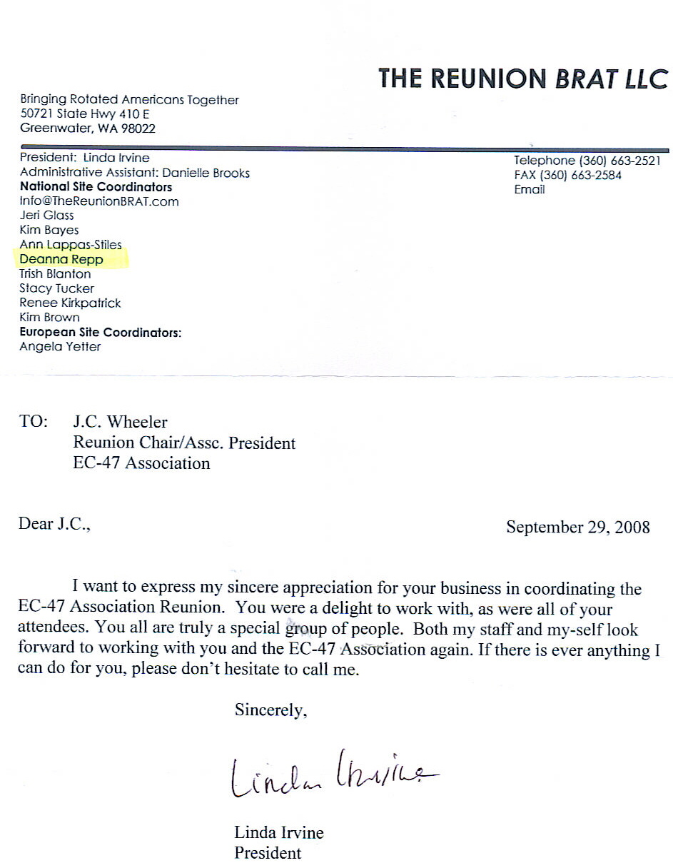 Page 3. Reunion 2008 Report****************************************Emails to/from the FTVA about Reunion 2008 **************************************** ----- Original Message -----=20 From: J.C. Wheeler=20 To: [email protected]=20Sent: Sunday, September 17, 2006 10:34 AM Subject: FTVA Reunion 2008 ( EC-47 Reunion 2008 ) =20 Good Morning Bob, =20 We, The EC-47 Association, have just completed our Reunion 06 in = Colorado Springs. At this reunion, we selected San Antonio for our next = reunion which will be in 2008. Before, we have alternated between May = and September but for this one we will most likely try and hold our = reunion at the same time as that of the FTVA which will allow those of = our group, primarily those of the 6994th Security Squadron to = participate in not only our reunion but also in that of the FTVA and not = have to pick one over the other. If you know yet, what dates your group = will be holding their reunion please let me know so we can begin working = on ours. =20 ( Please Note ) The EC-47 you see above in the Subject Line must be = there in any email to me at the above address in order to get thru my = Spam/Junk email filter rules. =20 Sincerely, =20 James C. Wheeler Signature of: J.C. Wheeler, The EC-47 History Site. ============================================================== ----- Original Message -----=20 From: Bob Crabtree=20 To: 'J.C. Wheeler'=20 Cc: [email protected]=20Sent: Sunday, September 17, 2006 3:58 PM Subject: RE: FTVA Reunion 2008 ( EC-47 Reunion 2008 ) J.C. Wheeler, At this time we do not know when the FTVA reunion in 2008 will be. = Normally it is the last week of the month, Thurs - Sat. We can let you know as soon as we decide. The next = Board meeting will be the end of Oct 06. =20 Bob Crabtree President FTVA ============================================================ From: "J.C. Wheeler"Date: Mon, 18 Sep 2006 08:47:12 -0500 MIME-Version: 1.0 Content-Type: multipart/alternative; boundary="----=_NextPart_000_0069_01C6DAFF.0876B1F0" X-Priority: 3 X-MSMail-Priority: Normal X-Mailer: Microsoft Outlook Express 6.00.2900.2869 X-MimeOLE: Produced By Microsoft MimeOLE V6.00.2900.2962 This is a multi-part message in MIME format. ------=_NextPart_000_0069_01C6DAFF.0876B1F0 Content-Type: text/plain; charset="iso-8859-1" Content-Transfer-Encoding: quoted-printable Thanks for the info Bob. J.C. Wheeler Signature of: J.C. Wheeler, The EC-47 History Site. ============================================================ ============================================================ From: J.C. Wheeler [mailto:[email protected]]=20Sent: Sunday, September 17, 2006 10:53 AM To: [email protected] Subject: FTVA Reunion 2008 ( EC-47 Reunion 2008 ) =20 In looking at the dates of your past reunions, I would assume, that = 2008 will also be the last weekend of September but not willing to bet = the farm on it. =20 Thanks again, J.C. Wheeler Signature of: J.C. Wheeler, The EC-47 History Site. =============================================================== Hello Bob, Thanks for getting the EC-47 Reunion listed. See you in September. J.C. Signature of: J.C. Wheeler, The EC-47 History Site. ----- Original Message ----- From: Bob Cope To: J.C. Wheeler ; [email protected]Sent: Saturday, November 17, 2007 8:58 AM Subject: Re: EC-47 Association Reunion 2008 Nice to "see" you again, J.C..... Looking forward to really seeing you and all the "Little Plane" guys again next year! Butch Wheeler (GRHS), Mike Christy and Mel Berg had a ball "managing" the 94th from the 3rd floor lanai (where we "Big Plane" (C-130, RC-135 and U-2) advocates had banished them) at PSR (MidOcean [Mis] Management or MOM) in the late 60s......My 4 "Alone, Unarmed and Afraid" sorties remain forever etched in my memory!!!! Bob At 08:36 AM 11/17/2007, J.C. Wheeler wrote: Good Morning, If you see fit, would you please add The EC-47 Association Reunion to your site under Scheduled Reunions? The EC-47 Association will hold its 6th Reunion on September 25th, 26th and 27th, 2008 in San Antonio, Texas. All those who were a part of the EC-47 Operations, (The 360th TEWS, 361st TEWS, 362nd TEWS and the 6994th SS and their Detachments), Aircrew, Ground Crews and Direct Support, are urged to attend. Point of contact is J.C. Wheeler (479) 754-3507, Check The EC-47 History Site for current information at: http://www.ec47.com/r-2008.htm Thanks, James C. Wheeler Flight Mechanic 361st TEWS Nha Trang 1966/67 Signature of: J.C. Wheeler, The EC-47 History Site |