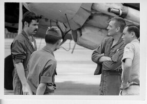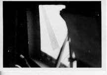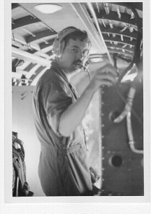 The emergency came when the Co-Pilot feathered the propeller on the Right engine. Jim, who was aboard, says he cannot remember any of the names of the other crewmembers, but says, "The Pilot did a hell of a job recovering and making a safe landing". The dark photo, taken from the Z-1 position of the feathered propeller. |