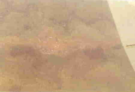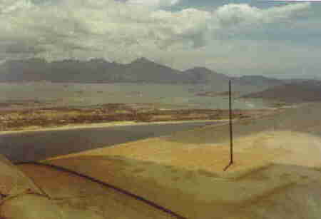 This picture was taken in November 1970 during a mission up North close to the DMZ. It shows Kae San (Spelling?) from probably 10,000 to 11,000 feet. We were not supposed to exceed 10,000 feet altitude because the backenders had no oxygen, however, as I recall, some of the mountains up there peaked out very high, so we would sometimes get up to 11,000 feet for a while to give us some distance between the possible enemy ground troops and our aircraft. This picture was taken after the big battle/seige that took place at Kae San, so the place was deserted when this picture was taken. |