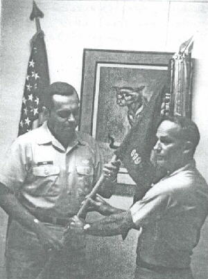 Lt. Col. Grover S. McMakin right, receives command from Col. Leon Inge.