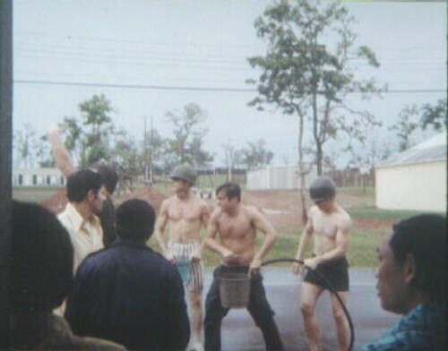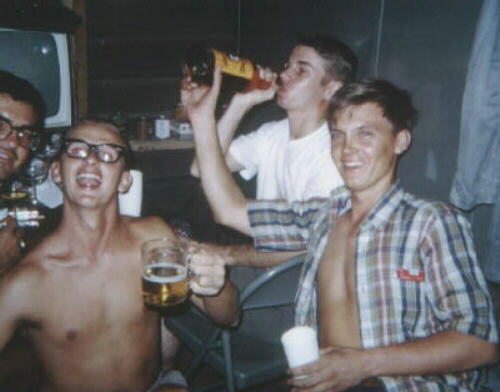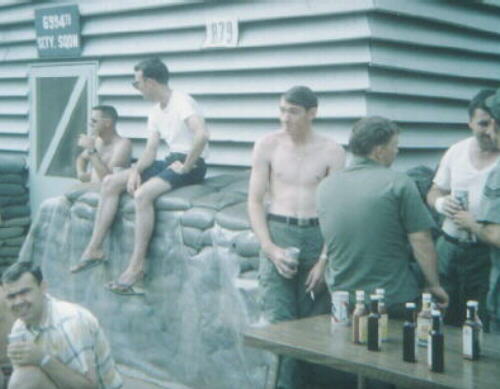 1968/TSN cook-out with beer in front of one of our barracks. That is Gary sitting on the sidewalk.