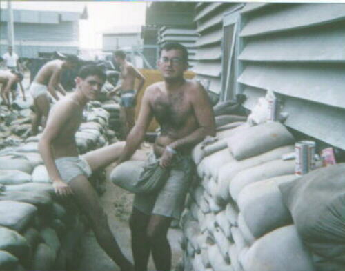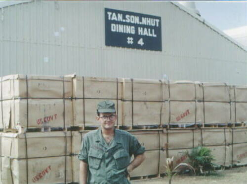 1968/TSN Don Edgcomb outside of one of the chow halls. The pallets were stacked for blast protection from rockets