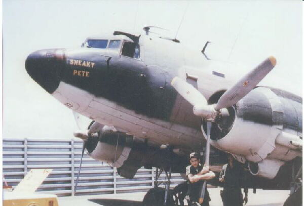 ![]() Sneeky Pete photo from Bob Hull. Bob said his notes indicate the Crew Chief was Jim Fabian. Says, 'I recall the X/Y equipment on this lady was always Excellent and was my favorite to fly on. I can't say for sure, but the tail number may have been 161 or -33?' Note: Look under the nose underside almost inline with the #2 Prop, looks like 33 to me. J.C.