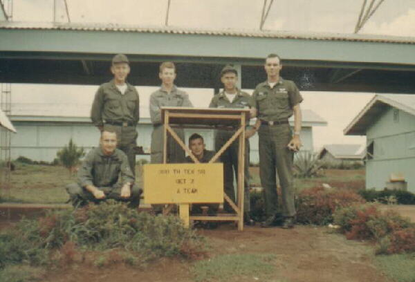 ![]() Pleiku May 67 Kneeling, Don Gregg, Bruce Garner Standing, Larry Anderson, Rusty Elder, Jack Cummings & Frank Rice