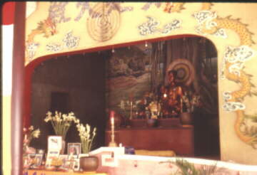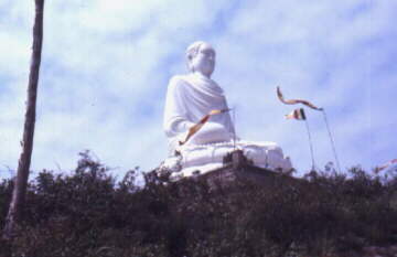 Left - Bronze Buddha inside the shrine. - - Right - Giant Buddha facing east ovelooking the city.