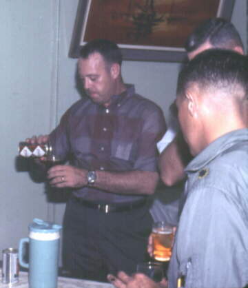 Left: Capt. Dick Guertin (IN) - - - Right: Unidentified Pilot & Maj. Parkinson at Party
