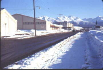 Left - Elmendorf Main Street along flight-line looking west, cold and lots of snow.