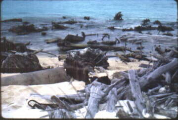 Right - Remnants of the battle of Midway rotting away in the surf off the end of the runway