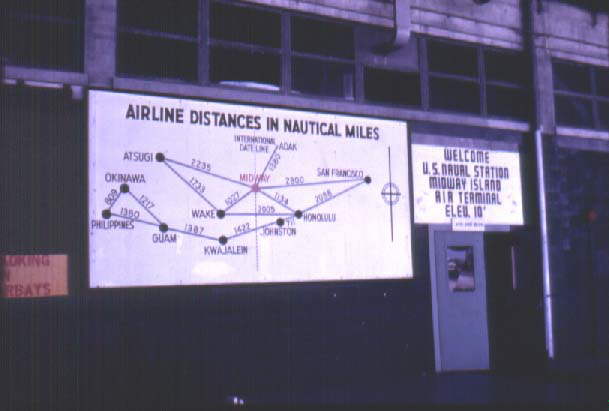 Sign at Midway with distances to other stopping point in the Pacific.