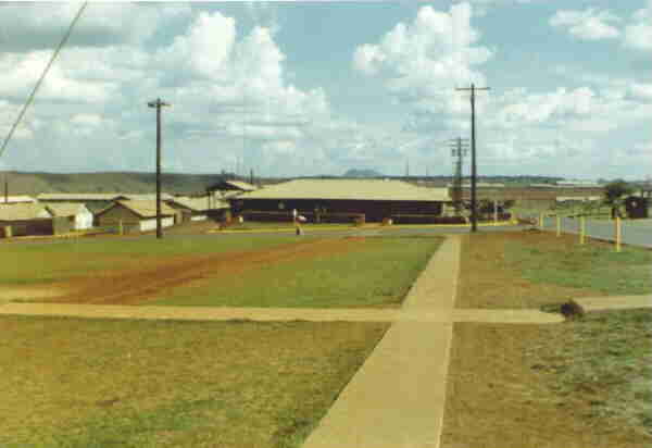 Picture taken May 1970. The Airmen/NCO Club straight ahead with barracks shown to the left. |