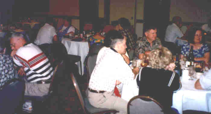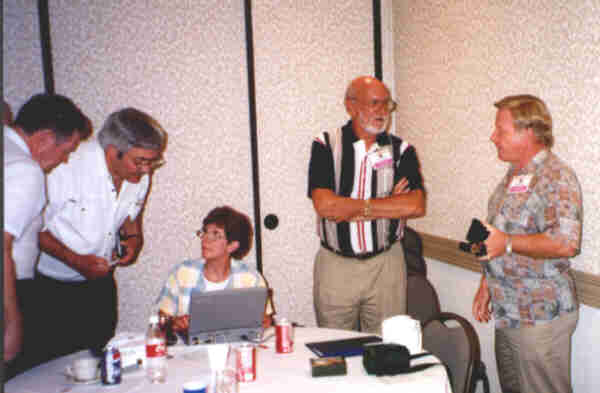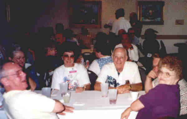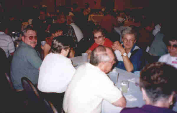 Bob Harris looking over his shoulder, Eunice and Frank Hinkle looking across