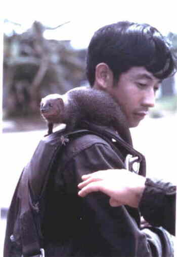 Right - Rick Yeh, with "Killer" the squadron mongoose Mascot, an Honorary SSgt with 20 Missions.